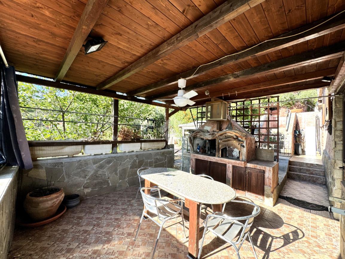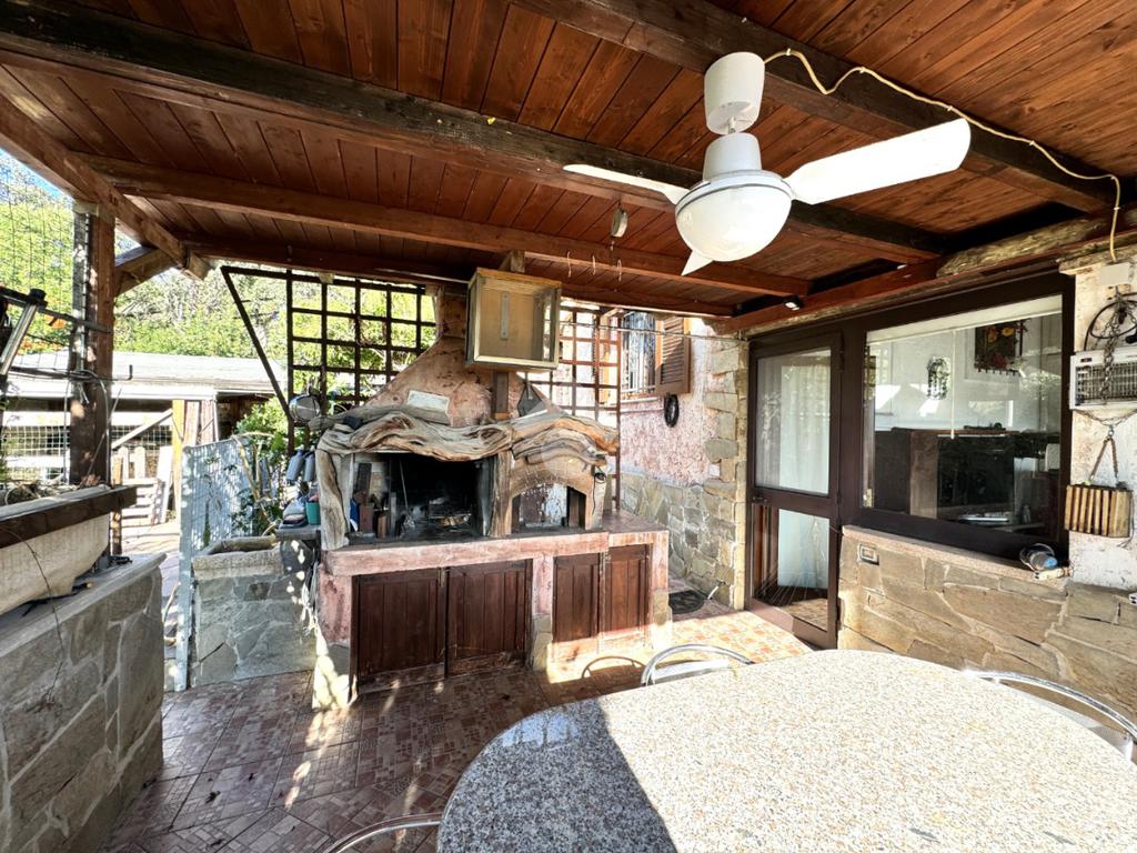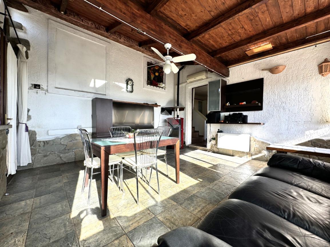 Dal giardino, un ampio patio vista mare, dotato di barbecue e ideale per pranzi e cene estive in convivialità, ci conduce ad un'ulteriore e spaziosa veranda coperta, arredata a salotto e adatta come zona lettura e tv.
