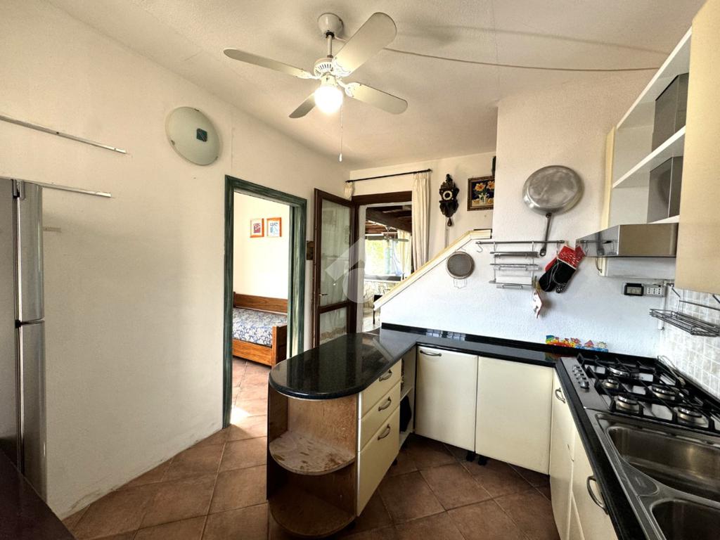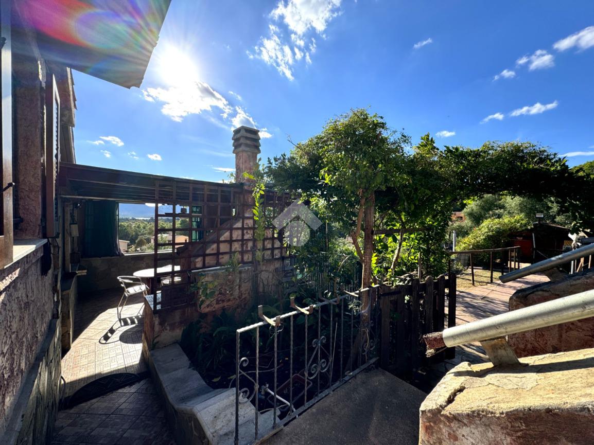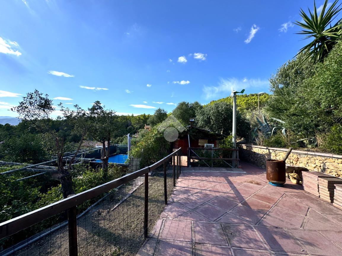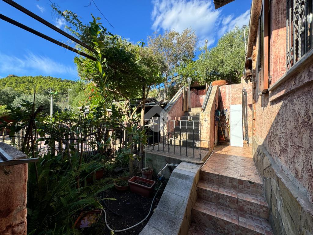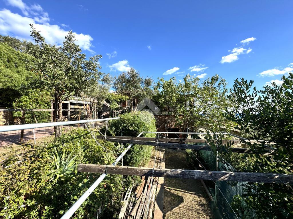 La soluzione ha accesso tramite un comodo cancelletto e percorso qualche gradino a scendere arriviamo all'ampio giardino di proprietà, dotato di tutti gli accessori e degli spazi, compresa la piscina vista mare, per godere al meglio dei vantaggi di una così abbondante pertinenza esterna.